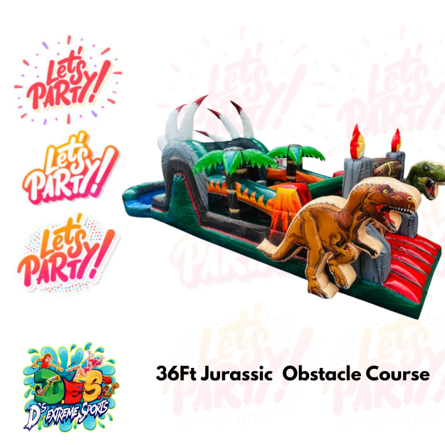 This inflatable unit is perfect for birthday parties, corporate events, school functions, and more. Featuring various obstacles, slides, and climbing challenges, the 36Ft Jurassic Obstacle offers hours of non-stop entertainment for everyone.