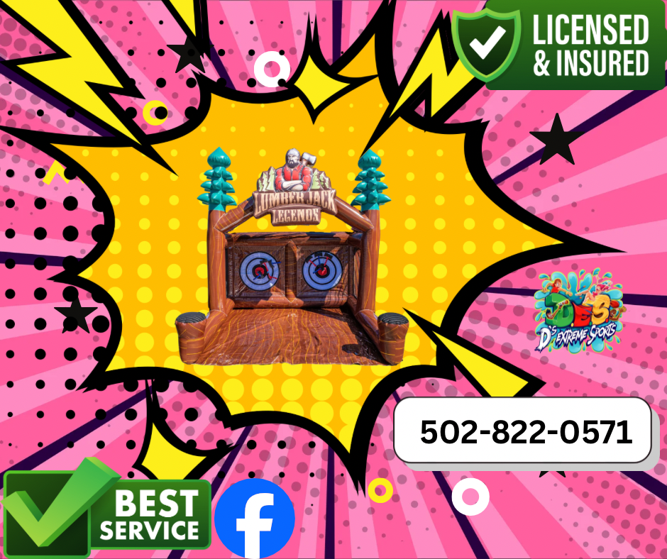 Are you looking for a Game Rentals for your next party or celebration event! Look no further than D's Extreme Sports! We have the best selection of Game Rentals around! Our selection of Game Rentals inflatables is extensive with a variety of bright and vibrant colors that are neutral friendly for ( Boys and Girls ) Best of all, All Game Rentals are cleaned and sanitized after each rental, so you can be sure that your kids will always have a safe and fun experience with us. Our Game Rentals really stand out and are the main attraction at party events such as birthday parties, school events , church festivals, and backyard events. Our #1 goal is safety for all our clients and we take great pride in offering high-grade selection of bounce houses for your celebrations or events. Whether you're renting an Obstacle Course , Dunk Tank Rentals , Extreme Sports Rentals ,Generator Rentals ,Tables & Chair Rentals, Water Slide Rentals We bring the fun to your doorstep! We provide delivery, set-up and pick-up to Meade County with quality inflatable rentals with excellent customer service! To make a reservation simply order online 24/7 from our website or call are office at 502-822-0571. We can be reached by email at dsextremesports@gmail.com or our Contact Ds Extreme Sports Inc. Follow us on Facebook as we update new inventory frequently!