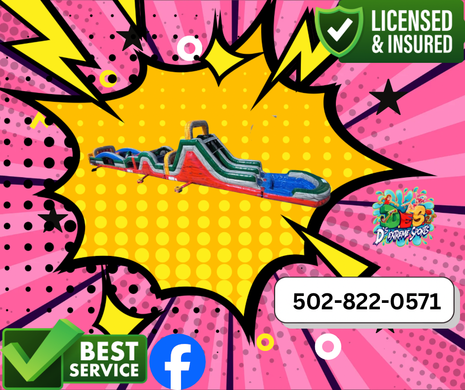 Are you looking for a Obstacle Course Rentals for your next party or celebration event! Look no further than D's Extreme Sports! We have the best selection of Obstacle Course Rentals around! Our selection of Obstacle Course Rentals inflatables is extensive with a variety of bright and vibrant colors that are neutral friendly for ( Boys and Girls ) Best of all, All Obstacle Course Rentals are cleaned and sanitized after each rental, so you can be sure that your kids will always have a safe and fun experience with us. Our Obstacle Course Rentals really stand out and are the main attraction at party events such as birthday parties, school events, church festivals, and backyard events. Our #1 goal is safety for all our clients and we take great pride in offering high-grade selection of bounce houses for your celebrations or events. Whether you're renting an Game Rentals, Dunk Tank Rentals , Extreme Sports Rentals ,Generator Rentals ,Tables & Chair Rentals, Water Slide Rentals We bring the fun to your doorstep! We provide delivery, set-up and pick-up to Hardin County with quality inflatable rentals with excellent customer service! To make a reservation simply order online 24/7 from our website or call are office at 502-822-0571. We can be reached by email at dsextremesports@gmail.com or our Contact Ds Extreme Sports Inc. Follow us on Facebook as we update new inventory frequently!